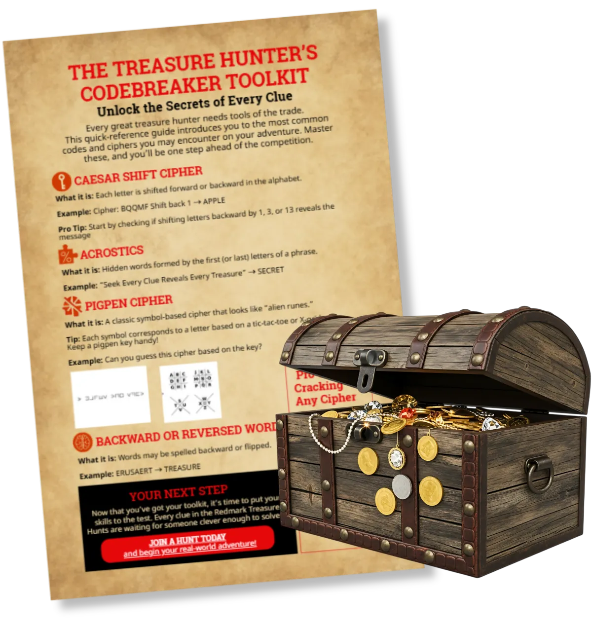 At Redmark Treasure Hunts, we design live, boots-on-the-ground treasure hunts with real prizes.